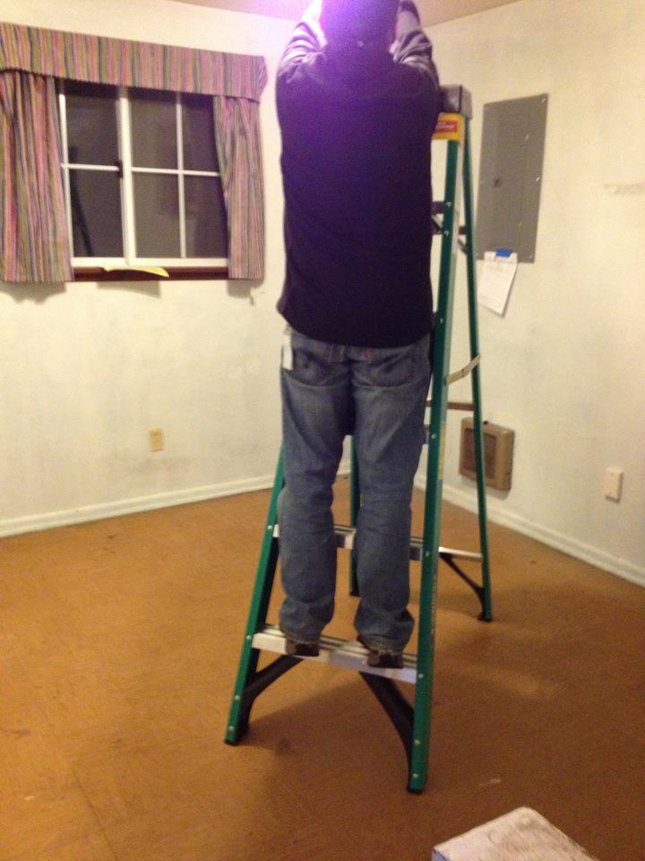 The night we got the keys we took his parents and brother over to take a look inside. Here are some pictures I took with my phone. As you can see below – the house was going to take a lot of work – and is still currently a work in progress.