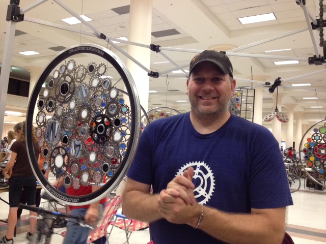 While we were looking around, I noticed a vendor who had all sorts of beautiful bike art and jewelry. We got to talking and come to find out he makes his living off his art and had come up all the way from Portland to sell at the swap. His name is Brian and he founded the company called Velo Gioielli. We even had matching t-shirts that I had gotten at a different vendor. Apparently they’re from Portland, too, and he is friends with them. I strongly recommend checking out his website for gifts for the biker lover in your life as well as Microcosm Publishing where we got the shirts!