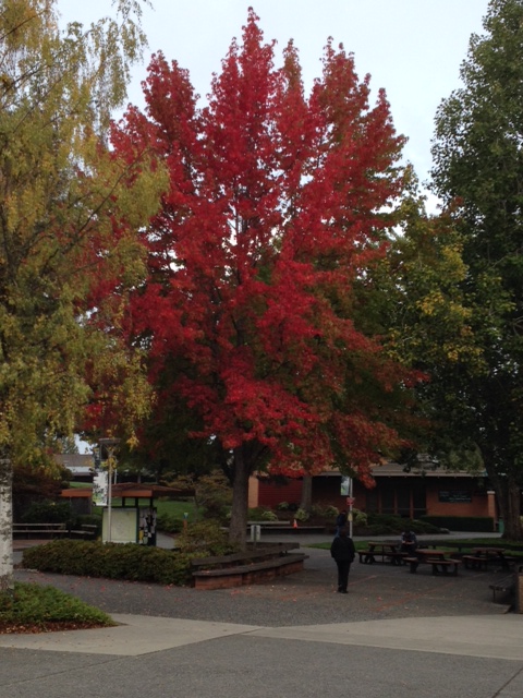Above is my favorite tree on campus. I love the red and that it’s so vibrant and colorful against the other two trees surrounding it.
