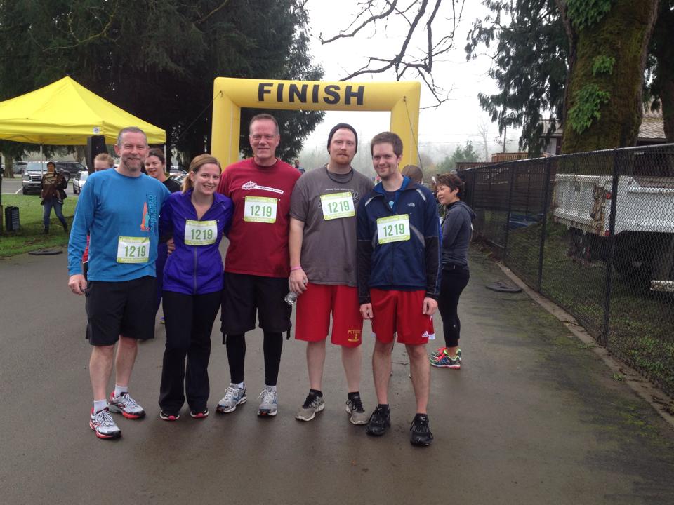 The run was called Run Evan In. Back in September, a 28 year old guy named Evan Sebenius was participating in his first half marathon called Beat The Blerch in Carnation. At mile 10 he collapsed and later died. So for the 5k on Sunday, we ran those last 3 miles for him. I didn’t know Evan, my dad had met him once or twice and he was a friend of a friend, but regardless the story is tragic and I was happy to participate in the run with my dad, my brother, Matt and our friend Sean.