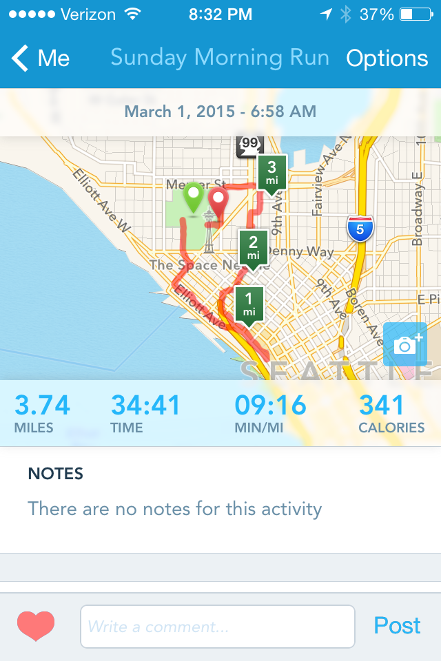 On Sunday I ran in the Hot Chocolate Run downtown. Since I am supposed to be preparing for my first ever 1/2 marathon in June, I originally wanted to do the 15k to step up my training, however, due to cost and late sign up, I ended up doing the 5k. Tricia and her mom were going to walk it and unfortunately I was unable to connect with them while I was there. So really, I worked til midnight the night before and got up at 530am to drive downtown to run a 5k by myself at 645 in the morning on a Sunday. In all honesty though, it was hard to be disappointed. The run took us from the Seattle Center, down to Pike Place and back and it was the most beautiful run. We started just as the sun came up and I really wish I had stopped to take pictures. We had such beautiful views of the water, the Great Wheel and the sun rise. But if I had stopped, I wouldn’t have PRed!