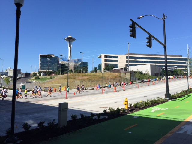 Mile 11: Two more miles! Everything hurts. There’s the Space Needle straight ahead! We’re almost done! Wait – why are we turning left onto the viaduct? WHY ARE THEY MAKING EVERYTHING LONGER!